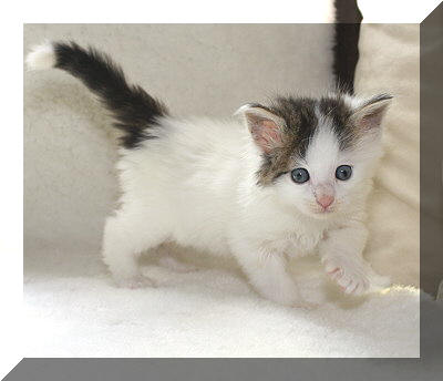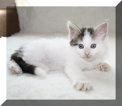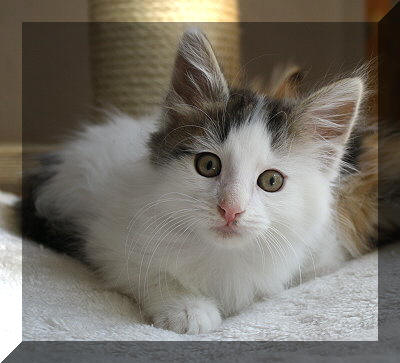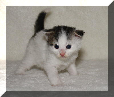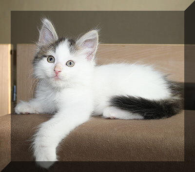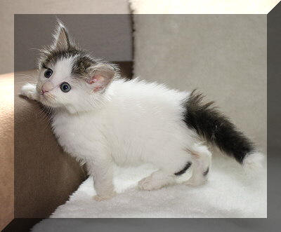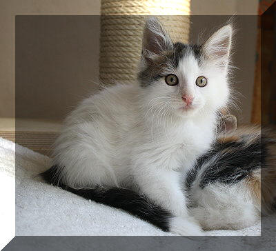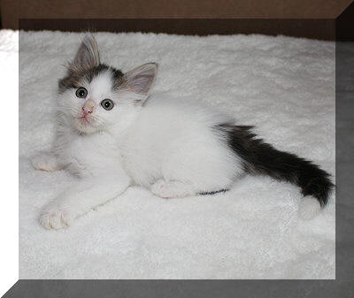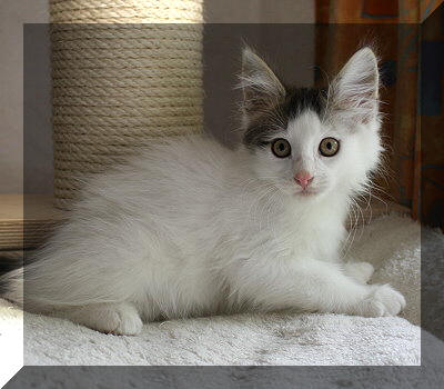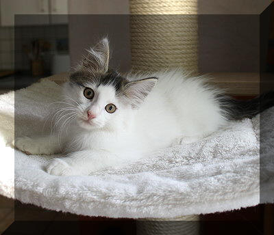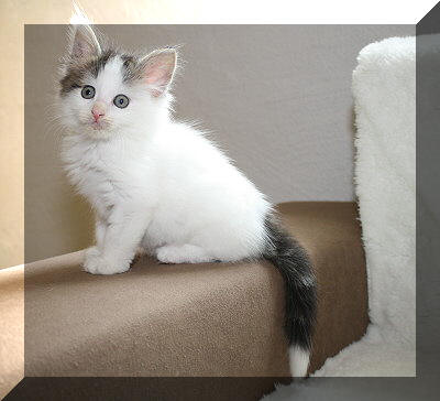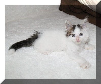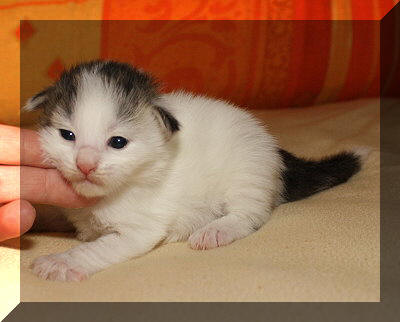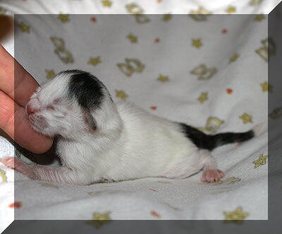 Anton ist ein wunderschöner Junge mit dicker weißer Schwanzspitze. Sechs Wochen ist er jetzt alt.