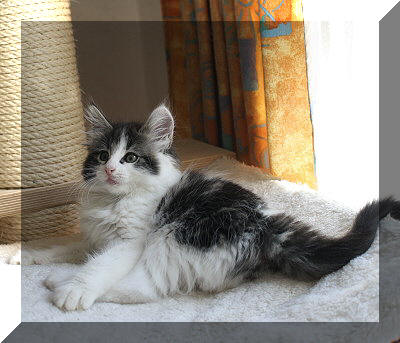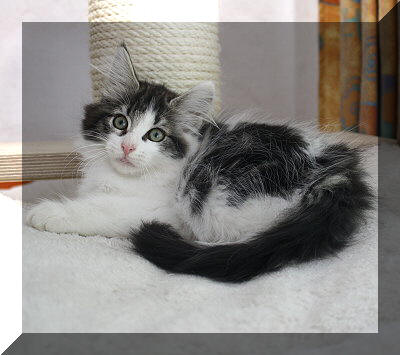 Mit siebeneinhalb Monaten wiegt Nuki gute 4 kg und hat ein Wahnsinns-Fell bekommen. Sie ist eine total liebe lustige Katze.