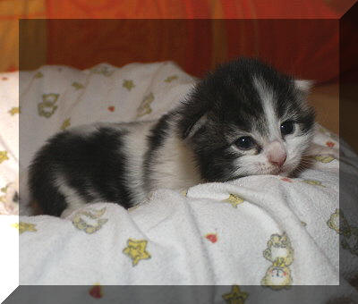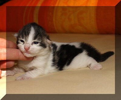Auch Nuki hat heute zum ersten Mal Futter probiert und sieht entsprechend aus. Drei Wochen ist der kleine Feger jetzt alt.