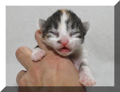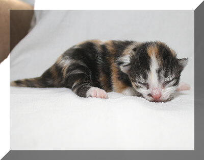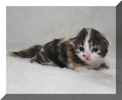 Doppa ist die bunteste Katze, die wir je hatten. Eine Woche ist sie jetzt alt. |