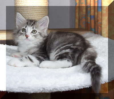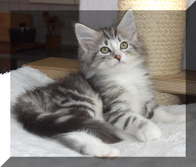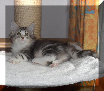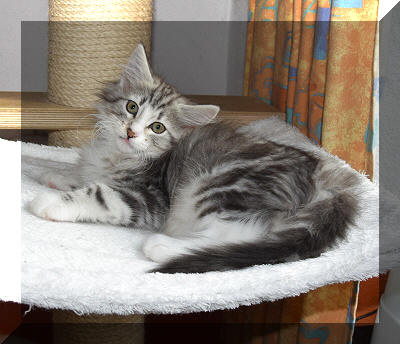 Efie hat ein richtiges Puppengesicht. So langsam schimmert auch das Silber besser durch. Fast 10 Wochen ist sie jetzt alt. |