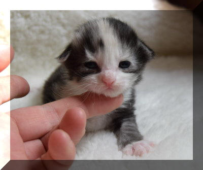 Elsa ist so ein hübsches Püppchen, das sich mit fast drei Wochen toll entwickelt hat. Genau so frech wie sie guckt ist sie auch. |