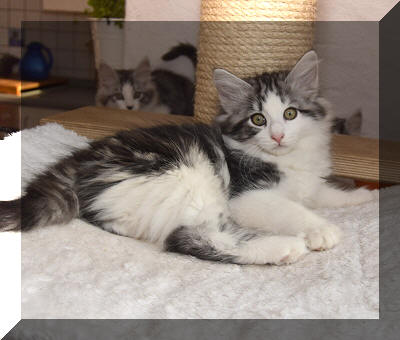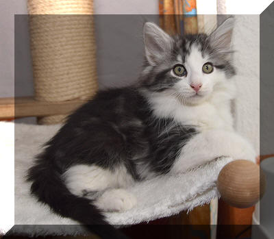 Haakon ist ein total lieber Schmusebär. Mit acht Wochen ist er der Größte des Wurfes. |