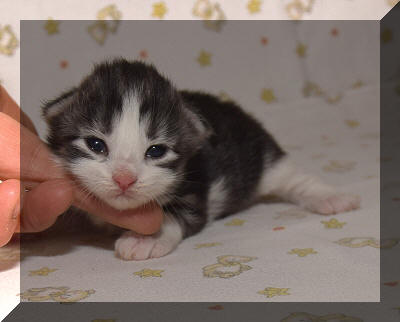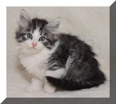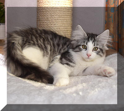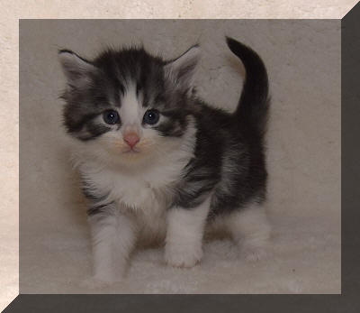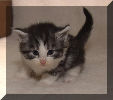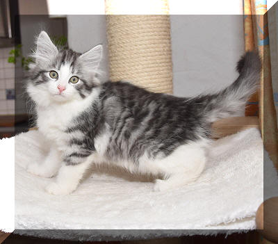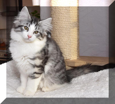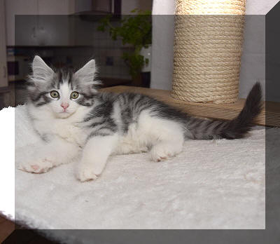 Mit neun Wochen ist Heti einfach wunderschön. Tolles Silber, tollen Kopf, dicke Pfoten. |