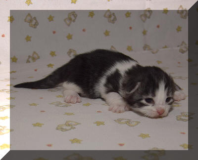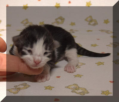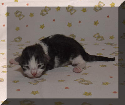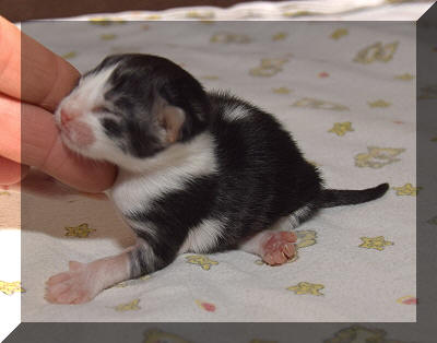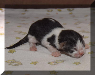 Die kleine Hilda war die Erstgeborene und hat nach ihrer Geburt ein wenig geschwächelt. Innerhalb von kurzer Zeit hat sie sich aber super erholt. Total witzig ist ihre weiße Markierung über die Wirbelsäule... :-) |