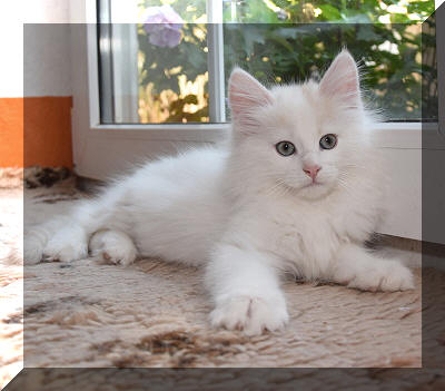 Iks ist ein cooler weißer Schneeball. Fast fünf Wochen ist er jetzt alt. |