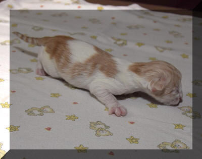 Auch Ilvis ist ein traumhaft schöner kleiner Bub, bei dem man in seinem Rot schon gut das Silber erkennen kann. 1 Tag ist er alt. |