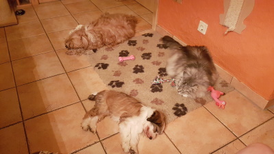 Und ich werde mich schon noch ein bisschen beliebt bei den beiden machen... Einmal habe ich für Ja-na und mich einen Kauknochen geklaut, da fand sie mich doch gleich ein bisschen netter.