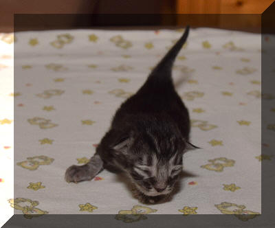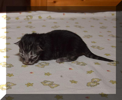Mit drei Wochen kann man Lina's tolles Silber erkennen. |