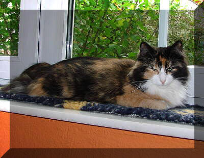 Unsere kleine Glückskatze ist sehr hübsch. Man beachte das rote Vorderbein... ;-)