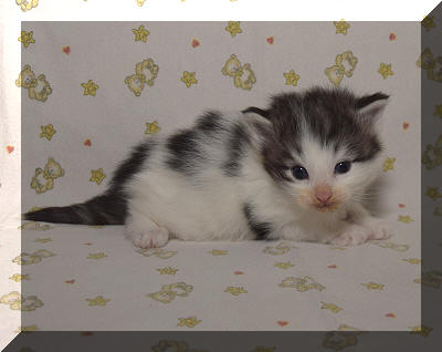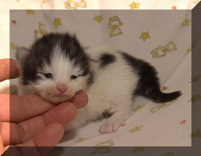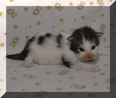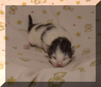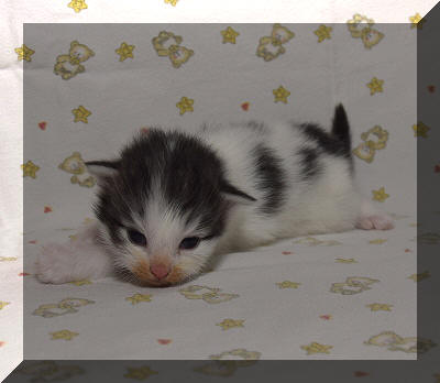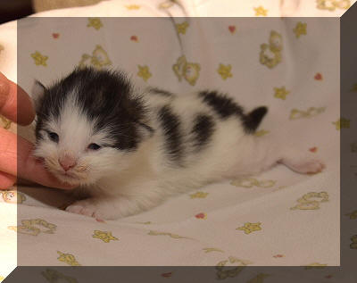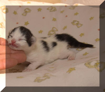 Der kleine süße Kuh-Kater war der Letztgeborene. Ein wunderhübscher Kerl. |