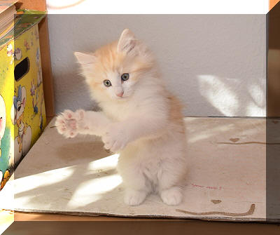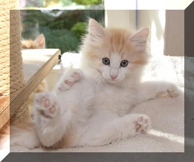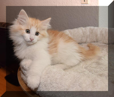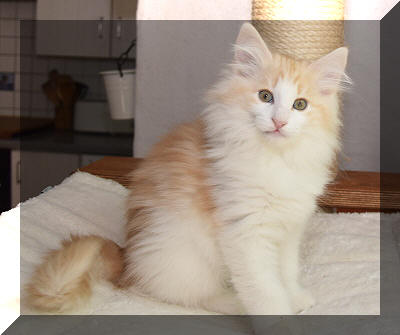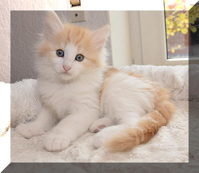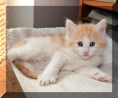 Mit sieben Wochen bleibt Quentin mein absoluter Favourit. Ein super schmusiger traumhaft schöner Kerl auf dicken Pfoten. |
