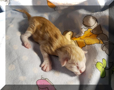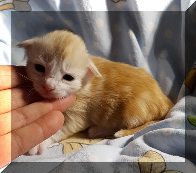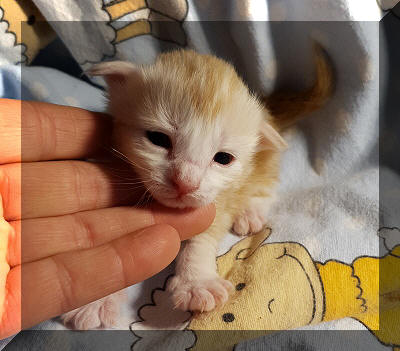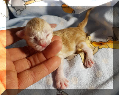 Mit drei Wochen sieht Quina langsam ein wenig aus wie eine Katze und nicht mehr ganz so wie eine Kaulquappe. ;-) |