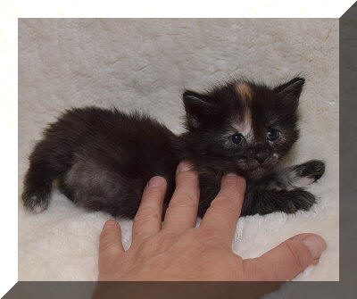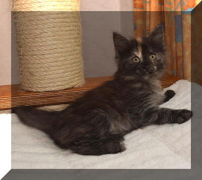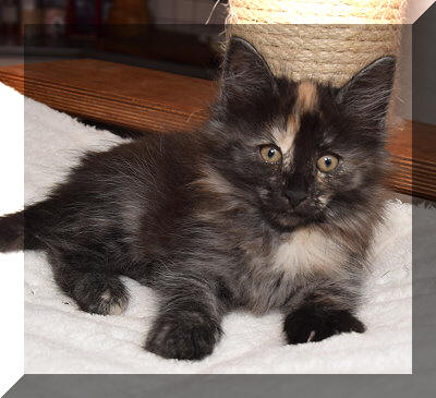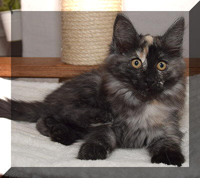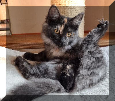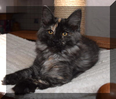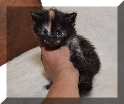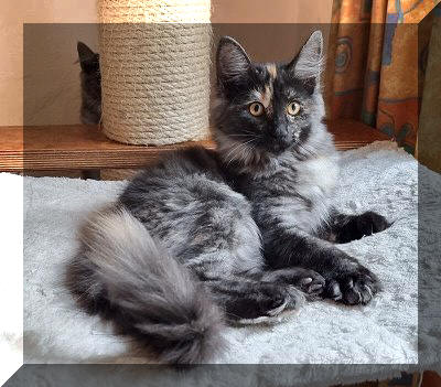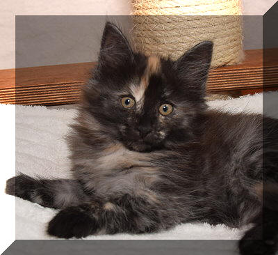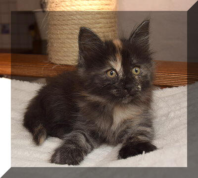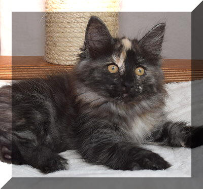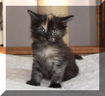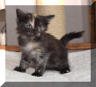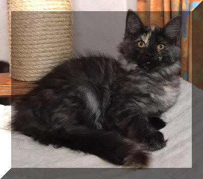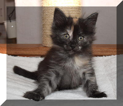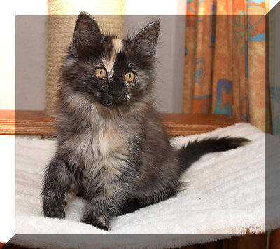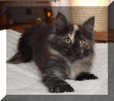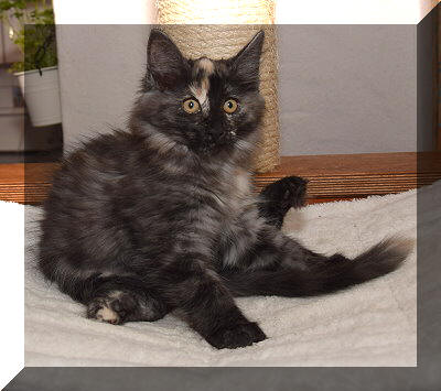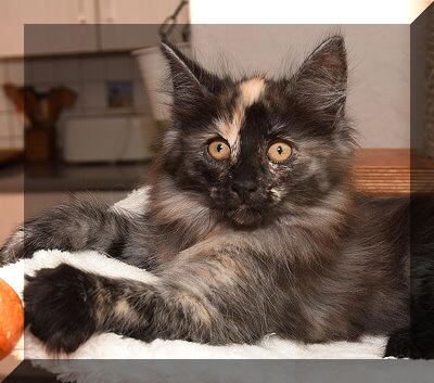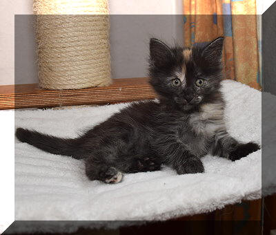 Eine traumschöne Tortiesmoke ist Senja mit 11 Wochen. |