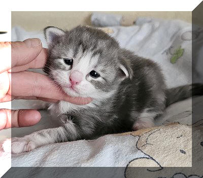 Mit fast zwei Wochen ist Wendelin ein bildhübscher kleiner Teddybär. Er wiegt schon 340 g. |