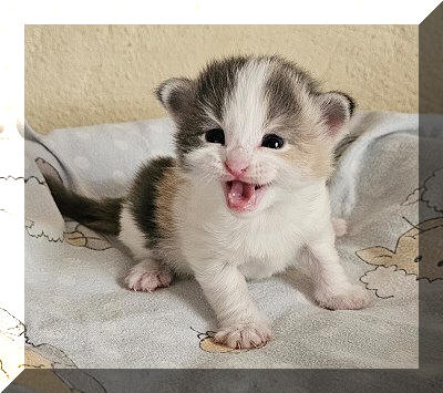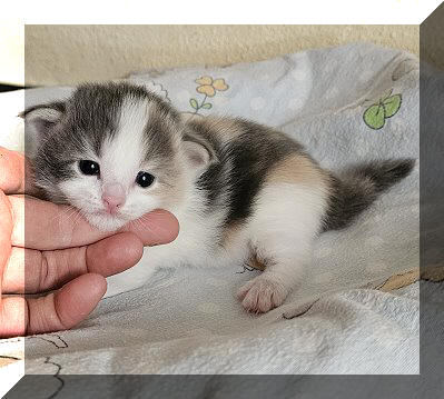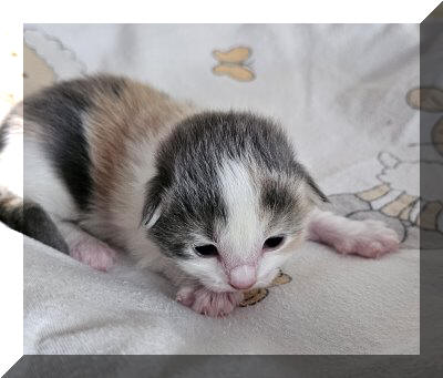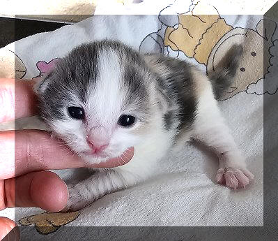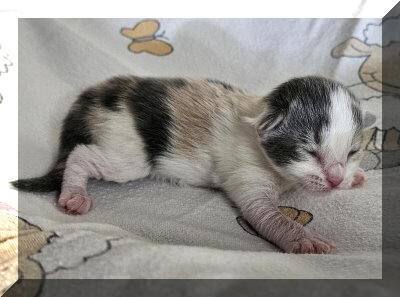 Mit fast zwei Wochen ist auch Wilma ganz gut gewachsen. Sie ist zwar immer noch leichter als ihre Geschwister, aber dafür sooo hübsch. |