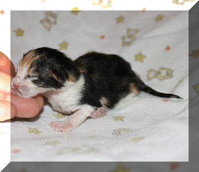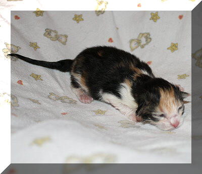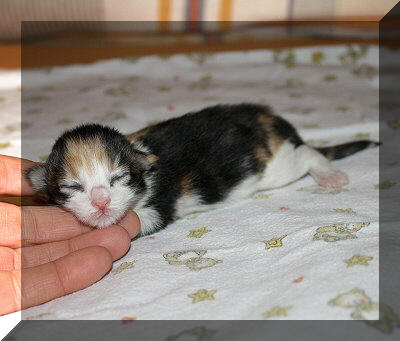 Diese kleine bunte Maus ist jetzt drei Tage alt.