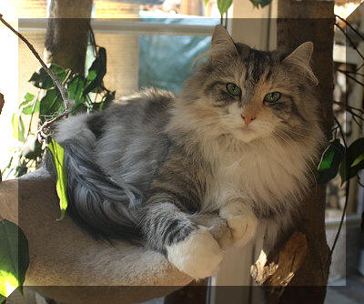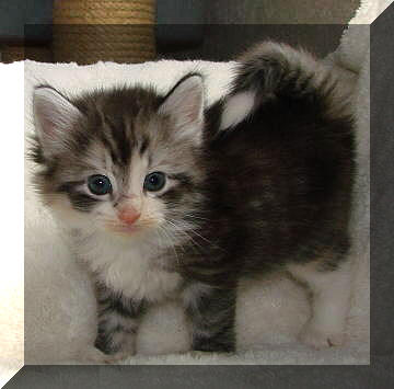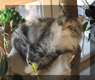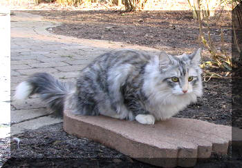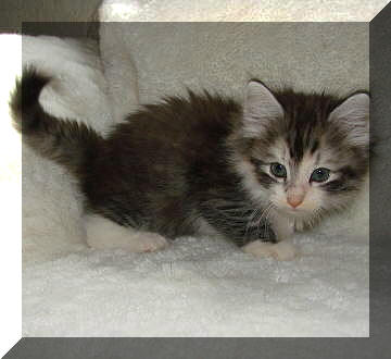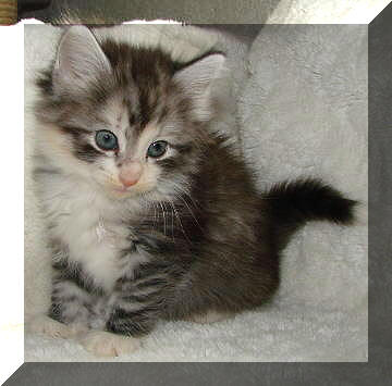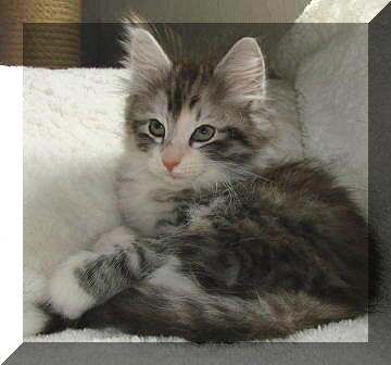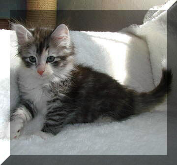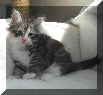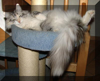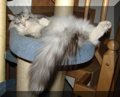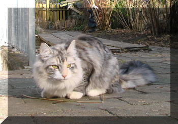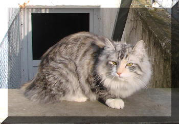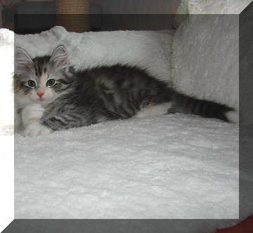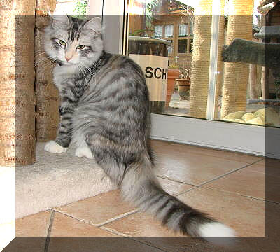 Mit 5 Monaten hat Oxana zwar noch nicht wirklich ihr üppiges Haarkleid wieder, aber ansonsten entwickelt sie sich wunderbar. Ihr Profil ist lineal-gerade, sie steht auf dicken Pfoten und hat einen super langen Schwanz.