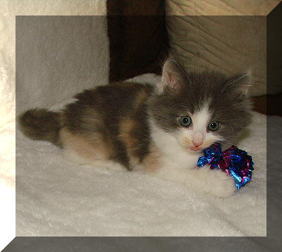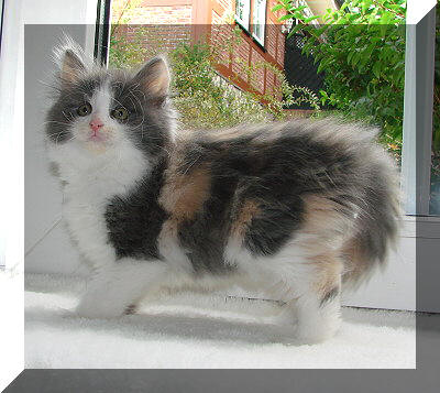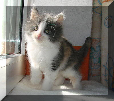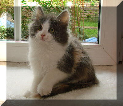 Tine ist jetzt ein gutes halbes Jahr alt und schon groß und kräftig wie eine Große. Sie wiegt 3,5 kg, hat super dicke Pfoten und ganz tolles Fell.