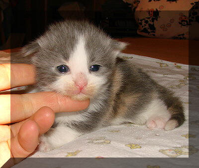 Mit achteinhalb Wochen ist Tine traumhaft schön. Um ihre Augen ist ein Ring wie mit Kajalstift gemalt....