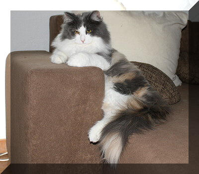 Mit zweieinhalb Jahren hat sich Tinchen zu einer prachtvollen kräftigen Katze entwickelt. Sie wiegt 5,1 kg und ist ein wahres Fellmonster.