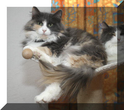 Uli ist unsere Oberterroristin. So viel Blödsinn, wie sie und Oxana machen, haben alle unsere Katzen zusammen noch nicht angestellt. Uli wird jetzt 7 Monate alt.